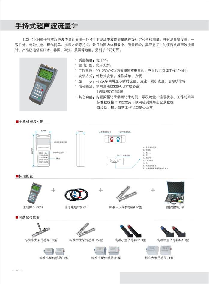 手持式超聲波流量計(jì) 一、概 述 AK-TDS-100H型手持式超聲波流量計(jì)利用了低電壓、多脈沖時(shí)差原理,采用高精度和超穩(wěn)定的雙平衡信號(hào)差分發(fā)射、差分接收數(shù)字檢測(cè)技術(shù)來(lái)測(cè)量順流和逆流方向的聲波