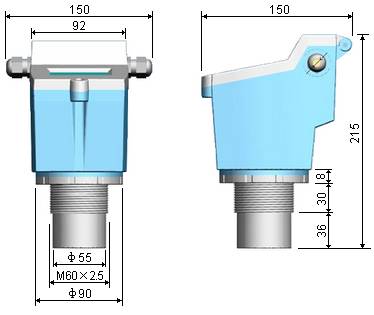 三、外型安裝尺寸(探頭尺寸會根據換能器量程的不同而有所改變,若有不同會預先告知)