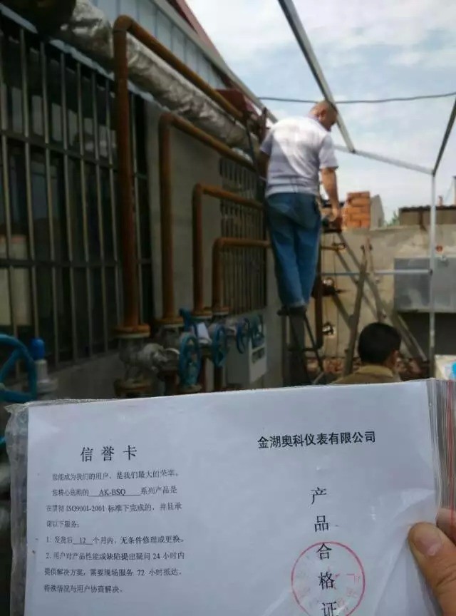 5月份初,金湖奧科儀表有限公司安裝團(tuán)隊(duì)來到位于南京六合區(qū)的南京康明服飾有限責(zé)任公司水洗分公司(簡(jiǎn)稱:康明水洗廠)現(xiàn)場(chǎng)安裝蒸汽流量計(jì),該公司使用蒸汽對(duì)服裝經(jīng)行蒸洗上色,所以要求對(duì)流量計(jì)的精度非常高,在采購蒸汽流量計(jì)的過程中,該公司反復(fù)比較,多方咨詢,zui終選擇我們奧科儀表的蒸汽流量計(jì),在一系列的安裝過程中,客戶單位對(duì)于我們的流量計(jì)給與高度贊譽(yù),對(duì)工人水準(zhǔn)給予贊揚(yáng)!
