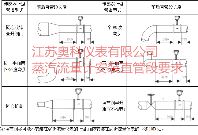 注:調(diào)節(jié)閥盡可能不安裝在渦街流量儀表的上游,而應(yīng)安裝在渦街流量儀表的下游10D處。