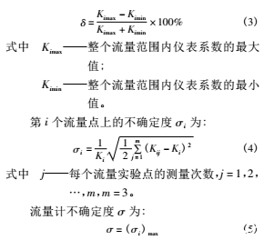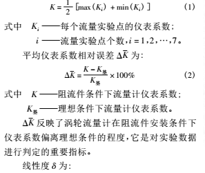 渦輪流量計的原理:當被測流體流過傳感器時,在流體作用下,葉輪受力旋轉,其轉速與管道平均流速成正比,葉輪的轉動周期改變磁電轉換器的磁阻值,檢測線圈中的磁通隨之發生周期性變化,產生周期性的感應電勢,即電脈沖信號?;跍u輪流量計的測量原理,根據渦輪流量計檢定規程,確定了實流實驗結果的評價指標,其中包括: 儀表系數、平均儀表系數相對誤差、線性度和不確定度。